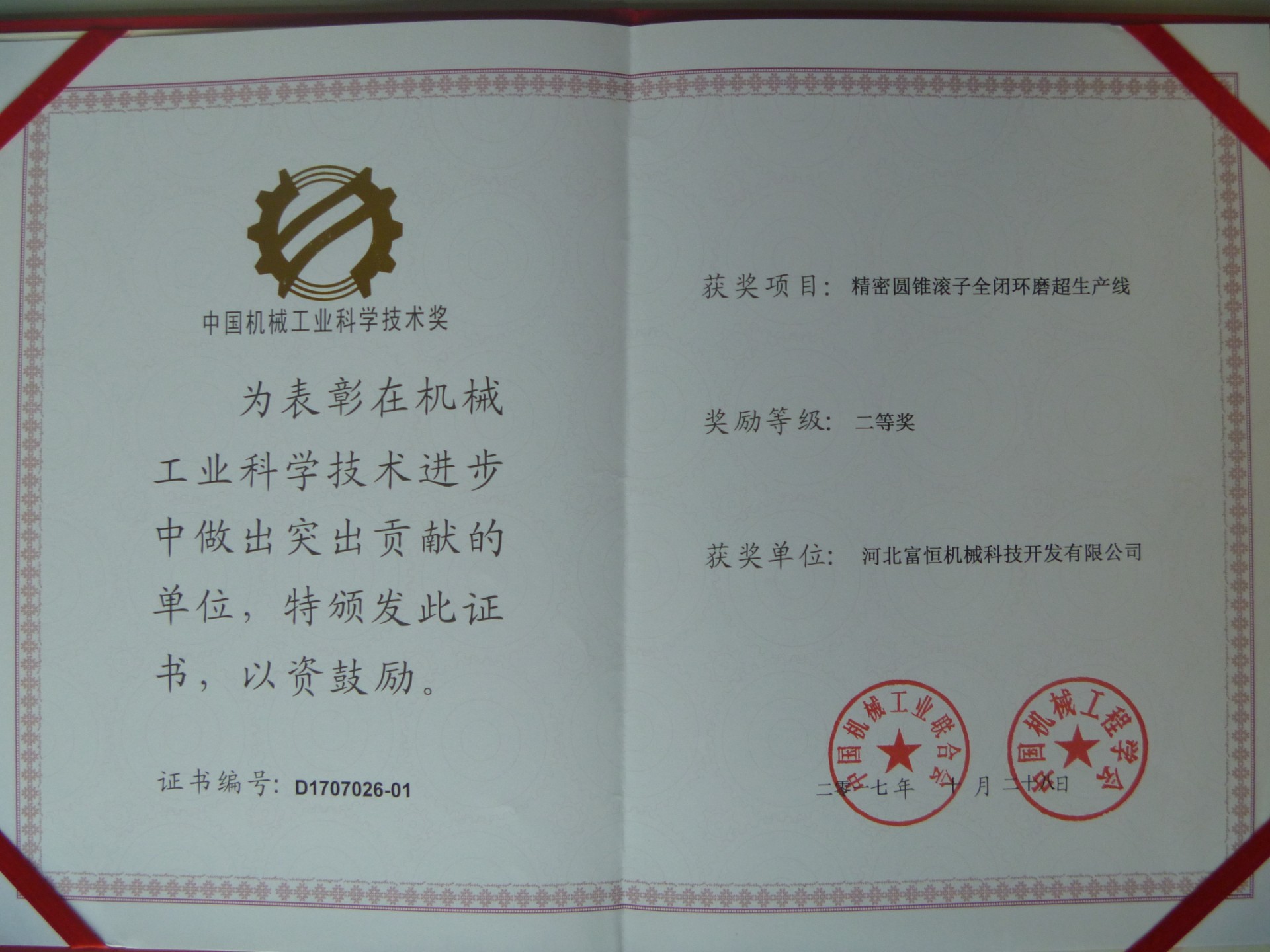 中国机械工业科学技术奖
